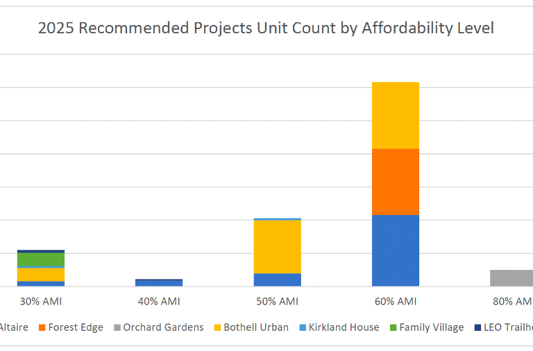 In total, Mercer Island’s share of the total HTF contribution to this project is about 1%. The total HTF contribution for all seven projects for all ARCH members is about $4 Million, which will (when paired with other funding sources) cover $298 million of construction costs for 502 affordable housing units.