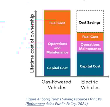 Key takeaway: Electric vehicles have a lower total cost of ownership than internal combustion engine vehicles: Estimated capital expenses for full electrification will be ≈$5.93 million, an increase of ≈$2.78 million compared to comparable gas or diesel vehicle replacements, but the 12-year operational savings will be ≈$4 million. These savings are primarily realized through fuel cost reductions as well as lower maintenance and downtime expenses.
