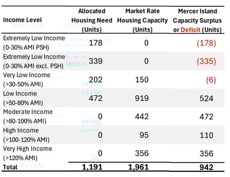 The Board concluded Mercer Island’s analysis did not clearly show how housing would be provided for very low-income and extremely low-income households.