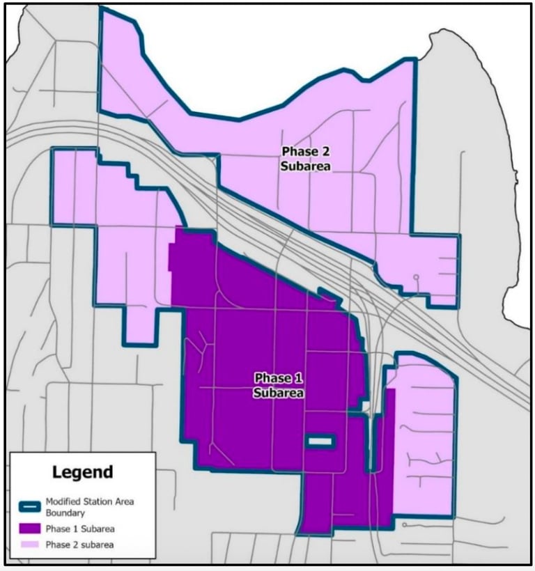 The GMHB order requires the city to adopt a station area subarea plan, covering roughly a ½-mile walking distance around station entrances.