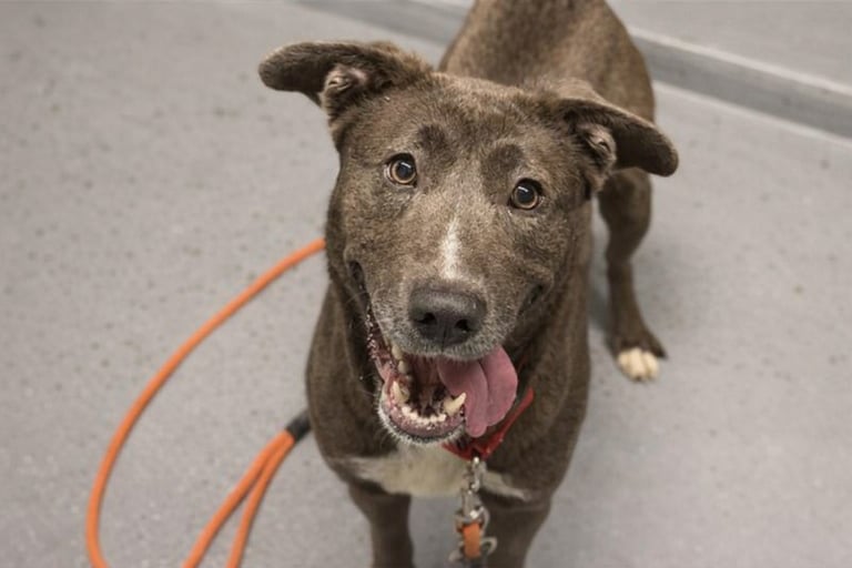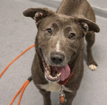 Hi, my name is Cupid, and I'm available for adoption! I'm a 9-month-old female gray/white Labrador Retriever mix dog (ID #A741483). I am still a young pup and have yet to really know my manners. I'm incredibly sweet, affectionate, and full of energy, but I don't know my size and love to jump up on people. Since I love to play, I do best when I have lots of exercise and something to keep my mind busy. I am very much food motivated and will do anything for a snack, which will be helpful when teaching me new skills.