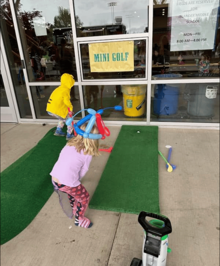 A defining feature of the Circus is its deep volunteer roots. Each year, MIPA parents, alumni families, students, and community members volunteer, making it a multi-generational effort across the island. Each year, one of the MIHS sports teams helps load and unload the circus supplies and helps the little kids enjoy the inflatable bouncy houses. The National Charity League is decorating and bringing back the Cake Walk. Students from Mercer Island Martial Arts, Creation Dance, and MIHS Cheer & Sparkle Cheer will be performing. The Mercer Island Women’s League, many of whom have deep ties to the Circus, helps with setup. Our city and school district support the Circus by bringing Touch-A-Truck, a fire truck, and a school bus for kids to explore. There are a couple of professional circus acts each year, such as Reptile Man and a Magician. Many adults who attended the Circus as children later return with their own families—or help run the event themselves.