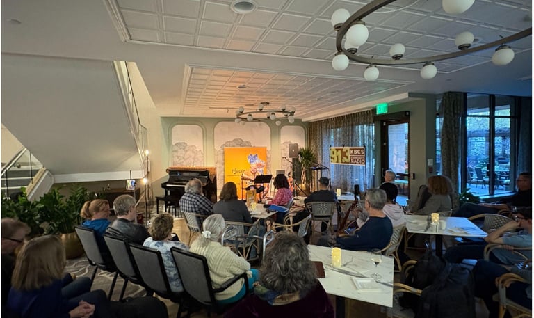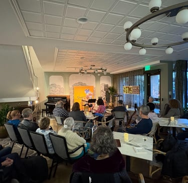 There's something remarkable about watching someone share a song they've written. It doesn't have to be perfect. Often it's the imperfections — the nerves, the shaky voice, the breath before they begin — that make the moment so human and so memorable. That's the heart of Mosaic MI, a songwriter-focused gathering I founded in 2023 in downtown Mercer Island, held on the first Thursday of every month from 7-9 pm at Aljoya Senior Living.