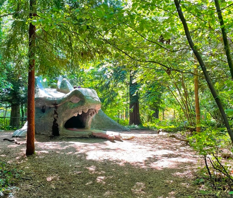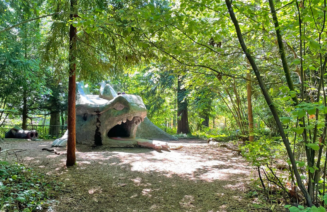 Nature Play Zones: Areas designed for "forest surprises," such as hidden Sasquatch carvings, educational signage about the local ecosystem, and sensory gardens.