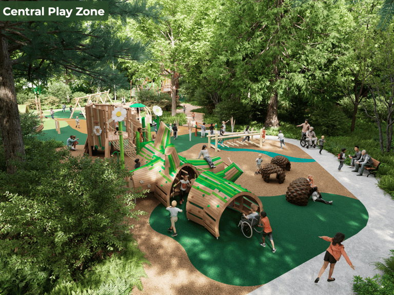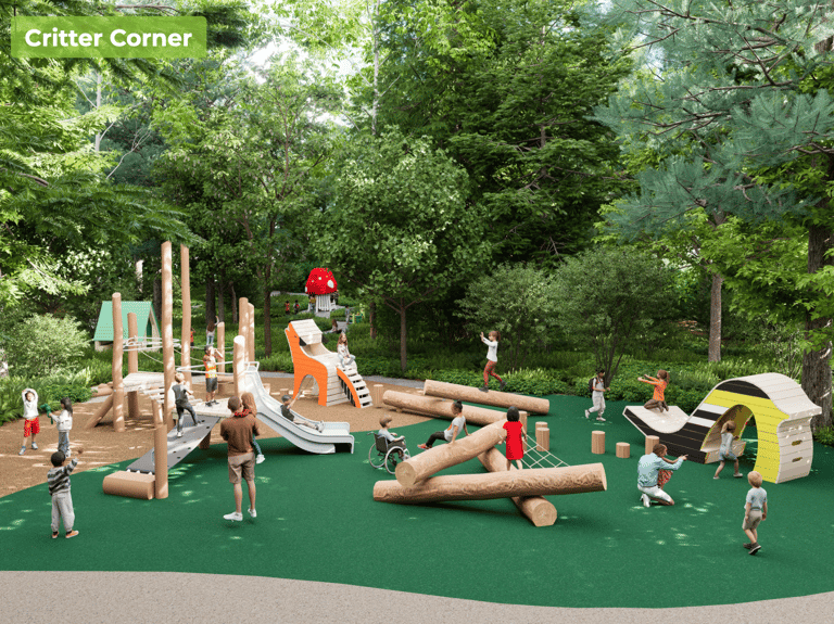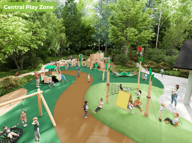 The goal is a park that is "equitable, not just accessible," where children with mobility or sensory challenges can play alongside their peers rather than on the periphery.