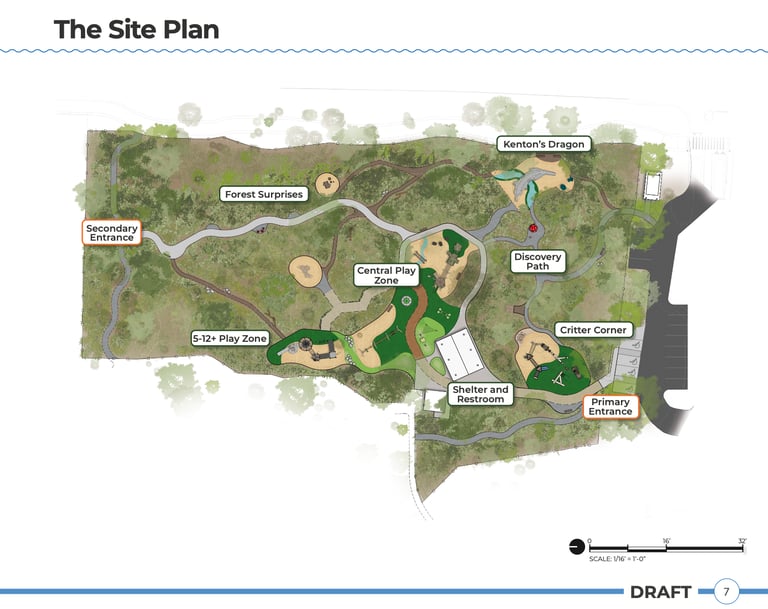Natural Setting vs. Accessibility The most complex debate centered on the tradeoff between the park's "forested character" and the infrastructure needed for accessibility. Community surveys showed a "near-universal" desire to keep the park feeling like a wild forest rather than a manicured city playground. Commissioners expressed concern that adding too much rubber surfacing or wide paved paths could "degrade" the very natural beauty people love. The compromise proposed in the site plan involves using "earth-toned" accessible surfacing and keeping the "Forest Loop" on the perimeter of the densest tree clusters to minimize root damage.