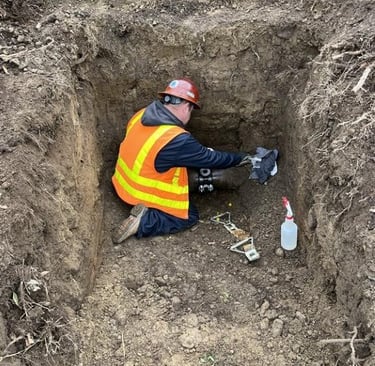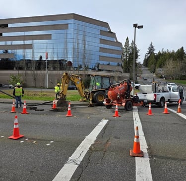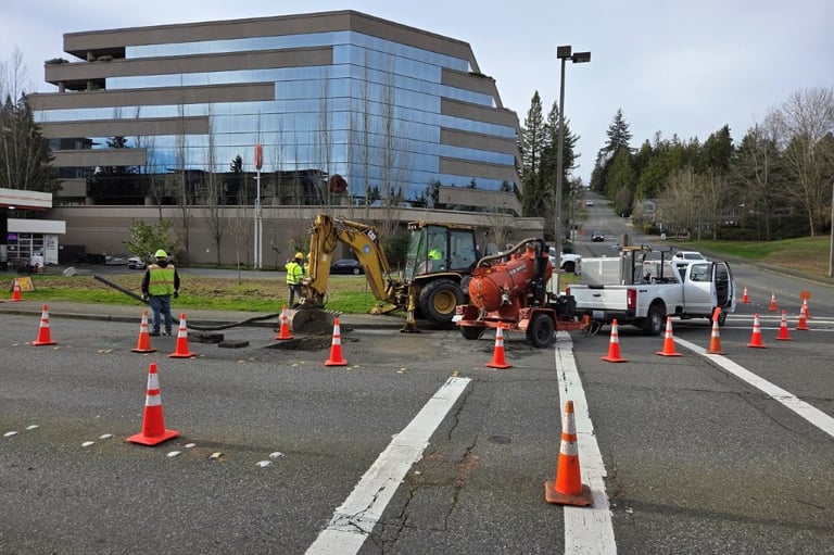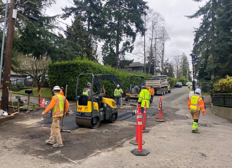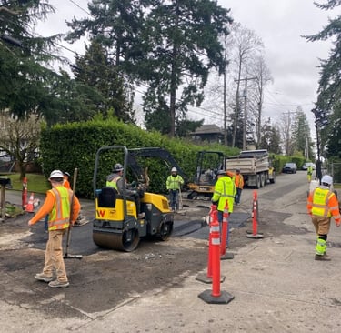 ROW & Stormwater staff repaired a severed underground electrical line on 76th Ave SE at SE 24th Street this week. Crews excavated a road section to find the damage, which was caused by a communications contractor boring through an underground power line feeding city streetlamps. The repairs restored service to five streetlamps in the area.