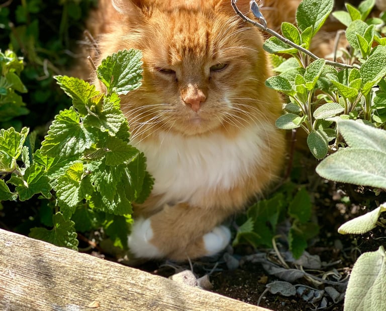 A fierce protector of the homestead, Chester took his role as Garden Sentinel seriously. He was the sworn enemy of the "garden scourge," successfully purging the grounds of rabbits, rats, and any other four-legged threats to the family harvest. His only weakness in the field was the catnip plant, which he did not protect so much as colonize, frequently seen rolling in it with unregal abandon.