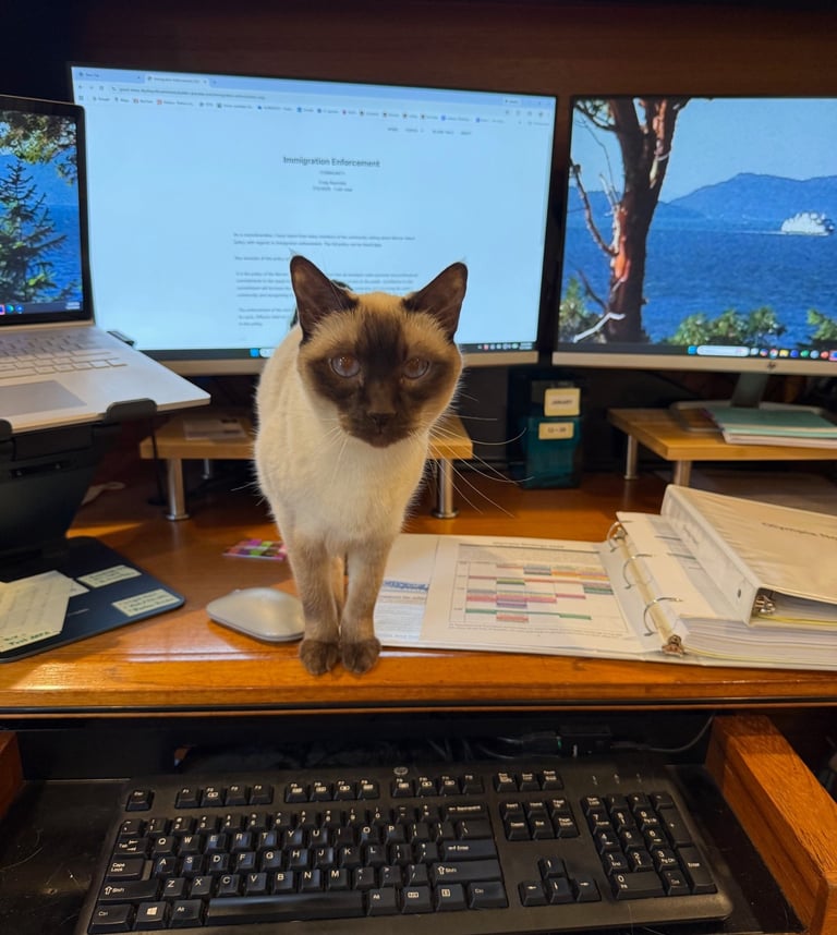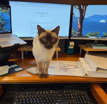 Meet Valkyrie, my co-author and chief feline critic. She is an 11-year-old “chocolate point” from a rare breed known as Apple-Head Siamese. Of all the cats who have allowed me to co-occupy their homes over the years, Valkyrie has by far the loudest purr — which she uses almost constantly to relay her boundless affection.